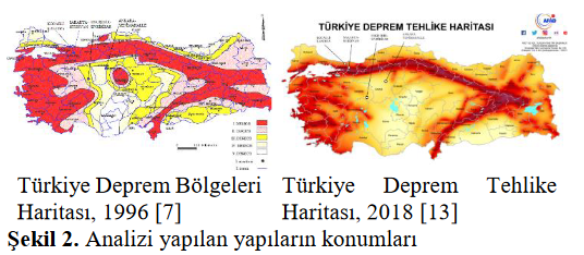 Bu konumların deprem haritalarındaki yerleri Şekil 2’de, 1996 ve 2018 Deprem Haritalarında gösterilmiştir.
