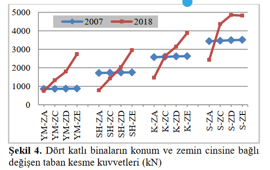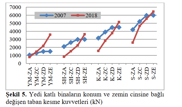 kuvvetleri, 2007 yönetmeliğinden daha büyük, ZA-Z1 zemin sınıflarında ise daha küçük olduğu görülmektedir (Şekil 5)