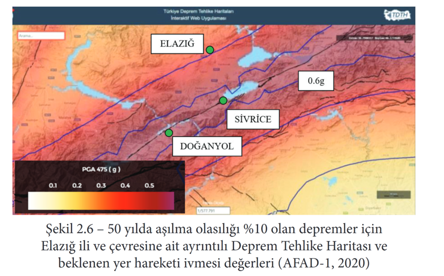 tarafından ölçülmüştür. AFAD-2 (2020) verilerine göre, Elazığ ilinde