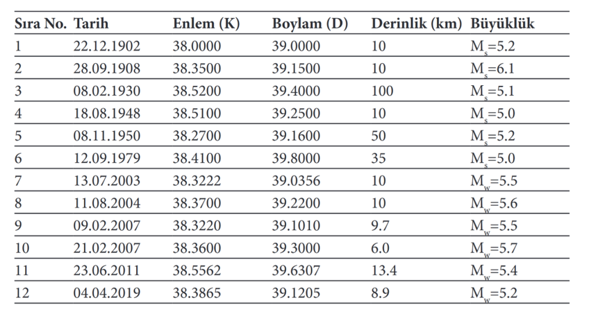 Elazığ ili çevresinde geçmişte de yıkıcı özellikli depremler meydan